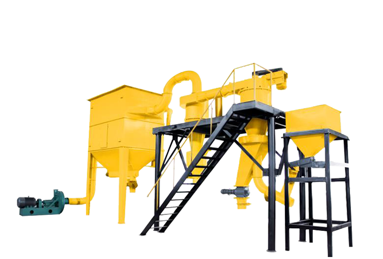 整套分級裝置由氣流分級機、旋風收集器、脈沖除塵器、高壓引風機、電控柜等組成。氣流分級機是帶有二次進風及立式安裝的大葉輪轉(zhuǎn)子的強制型分級機。